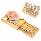 Find cutlery open stock and sets at Target.com! Picnic time s kitchen block deluxe is a chef s best friend. It s a large cutting block with a pullout tray that houses seven brushed stainless steel kitchen cutlery pieces. The cutting block measures 18lx12.4wx1.8d" and is made of rubberwood, a hardwood known for it rich grain and durability. A moat is carved along all 4 sides of the board to collect juice runoff from roasts or other foods. The tools include a bread knife, filet knife, large carving knife, small carving knife, boning knife, paring knife and a set of 4" meat shears. It makes a thoughtful, useful gift for newlyweds, new homeowners or anyone who enjoys.